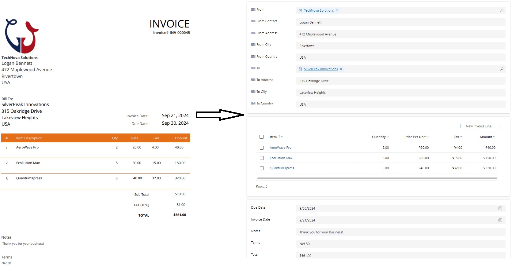 - ModifyInDatabase: When set to true, the API will return the extracted data and either create a new record or update an existing one in Dynamics 365 if the record ID is provided. If set to false, the system will only return the extracted data without creating or updating any records.