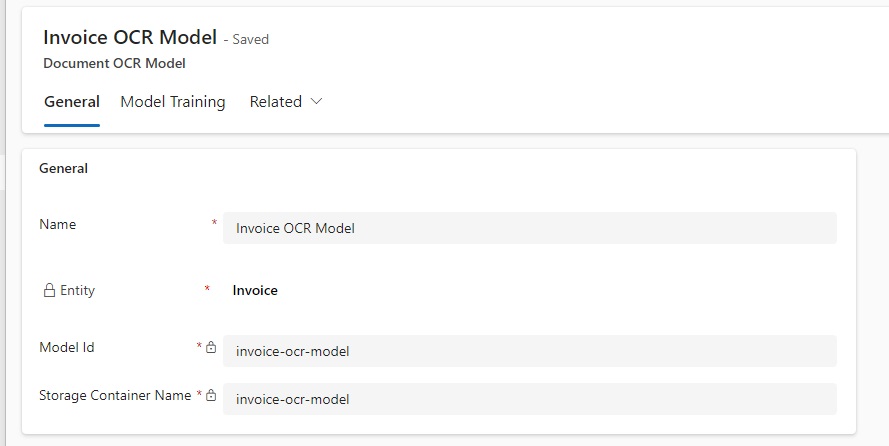 Then, administrators need to set up an OCR model and associate with the entity. Each document or image layout requires a separate model. The model is used to map the fields between the document/image layout and the entity fields. An entity can be associated with multiple models, where each model is trained on a specific layout of an image or PDF file.